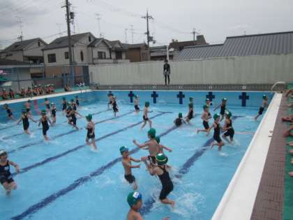 初めてのプール学習は,良い天気で気持ちよく入りました。