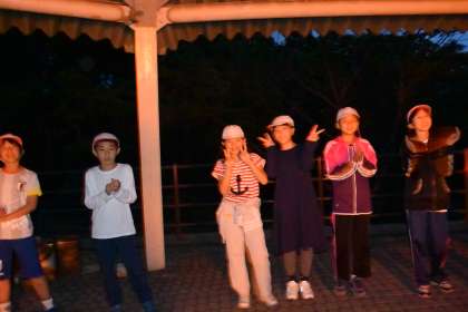 3日目の夜は、キャンプファイヤーをしました。レクレーション係の児童が司会や火の子,ゲームの進行など役割分担をして進めてくれていました。