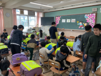 4年生は書初めをしました。今年一年が素敵な一年となるよう,一文字一文字心を込めて書きました。