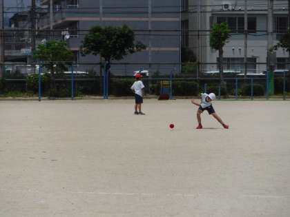 ボールを投げる, 打つ, 捕る, の動きがある種目は初めての3年生たち。