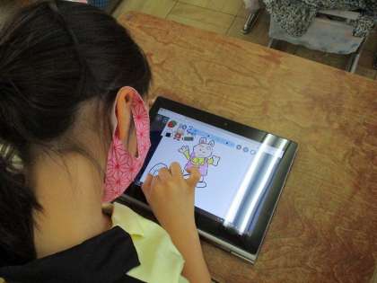 今週も校長先生に来ていただき,タブレット学習を行いました。今日はロイロノートを使って指で絵をかきました。思い思いに絵をかいて,色も塗りました。最後に「提出」機能を使って全員分の絵が集まりました。
