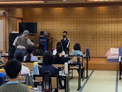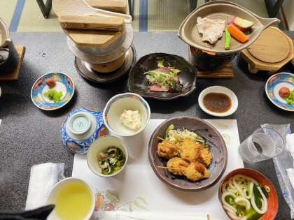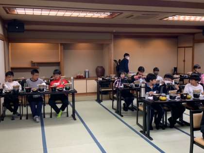 待ちに待った夕食の時間になりました。とっても美味しい夕食で食も進みます。ごはんは,1人ずつお釜からよそって食べます。みんなしっかり食べていました。