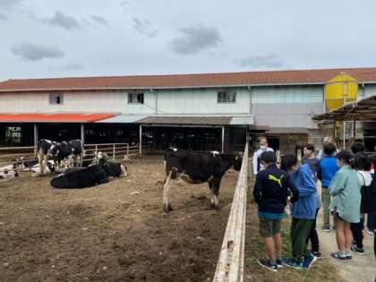 お昼ごはんをいただく前に,クラスごとに牧場散策をしました。