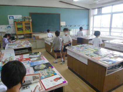 家庭科室や図工室に様々なジャンルの本が並べられ,真剣にこれが図書室に入ったらうれしいなという本に印を挟んでいきました。