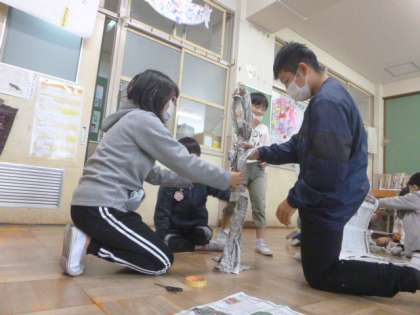 「グループで力を合わせてより高い新聞紙タワーを作ろう」というめあてで活動しました。