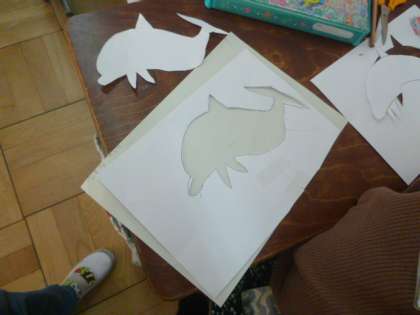 今日は,自分の好きな動物を描いて切り取っていきました。