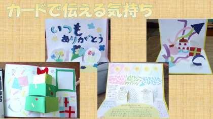 誰に送ろうかな,どんな気持ちを伝えようかな,と,送る相手を思い浮かべながら作りました。それぞれが工夫した,とても素敵なカードができました。
