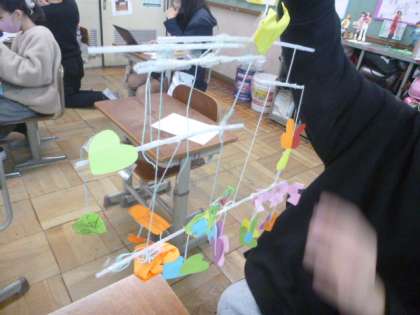 思った以上につるすものにこだわり,まだ未完成の子もいますが,休み時間も使いながら本当に熱中して作っていました。