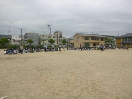 低学年にとって初めて,その他の学年にとってはかなり久しぶりに全員が運動場に集まりましたが,避難の仕方や話の聞き方などよくできていました。
