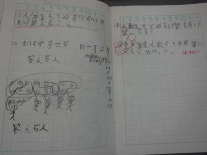 算数「わり算」では, 授業のふりかえりに「○○さんがいいことを言ってくれて, よくわかった!」「さいしょはなんで15÷3でとけるのか分からなかったけど, みんなの話を聞いたら分かってうれしかった。」という言葉が増えています。