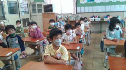 5月12日(木)1年生を迎える会の動画を見ました。お兄さん・お姉さんたちから動画を通して「困った時は助けるよ」や「仲良くしようね」等のメッセージを受け取り,とても嬉しそうに見ていました。1年生の子ども達は,「とても嬉しかった」や「お兄ちゃん・お姉ちゃん達ともっと仲良くしたい」という気持ちが芽生えていました。