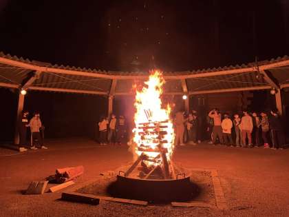 山の神から、挑戦、友情、感謝、三つの火を分けてもらい、楽しみにしていたキャンプファイヤーが始まりました。