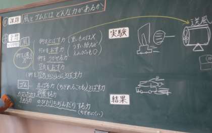 風やゴムにはどんな力があるんだろう?を課題に, 理科の新しい学習がスタートしました。これまでは生き物の観察をして学習を進めることが多かったので,