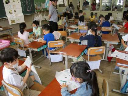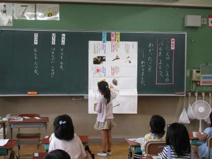 1年3組で研究授業がありました。本時は,文章の内容を把握できるよう,教材文を読み進めていきました。どんなことが書いてあるのか読み,お互いに分かったことを伝え合う姿が素敵でした。