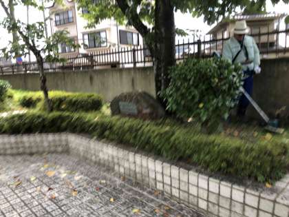学校では、伸びている草を抜き、