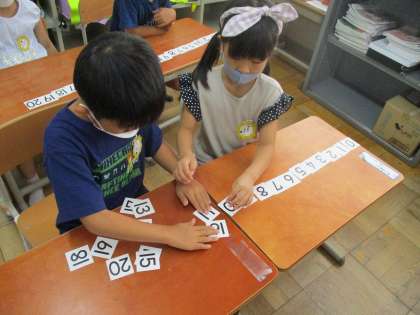 2学期が始まり、これまで習っていた数より大きい数について学習を進めています。子どもたちは数の大きさを比べたり、順番に並べてみたり、数に親しみをもって取り組んでいます。ぜひご家庭でも、身の回りの物の数を数えてみてください。