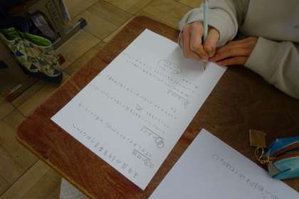 飼育委員会では、今年度よりメダカやグッピー、ネオンテトラのお世話をしています今回の委員会では、来年度の飼育委員へ当番活動の仕方を伝える手紙を書きました。魚の種類や水替えの仕方について丁寧に分かりやすく書き進めていました。普段から何に気を付けながらお世話をしてるのか伝わってきました。