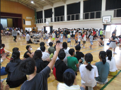 全校のみんなで『さんぽ』を歌う時には、みんなで足踏みをしながら気持ちよく歌っていました。
