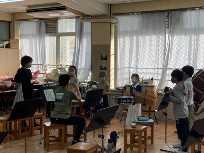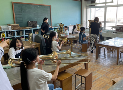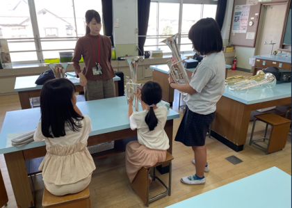 ブラスバンド部に入部を考えている子どもたちの体験がありました。経験のある子が、初心者に優しく教えている姿が素敵でした。