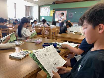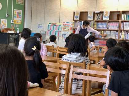 本が好きな子が多い4年生は興味津々。ラベルによる分類について知り「そうだったのか!」とこれからの図書館の利用を楽しみにしていました。