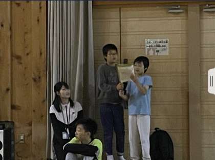 みんなで「今日の日はさよなら」を歌いました。レクリエーション係がマイクで歌いながら、みんなもそれに合わせて気持ちよく歌っていました。