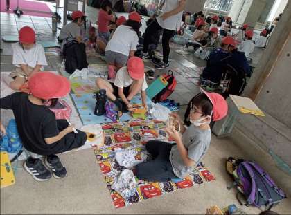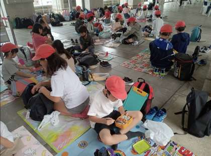 2グループに分かれて、京都駅ビルでお弁当食べています。