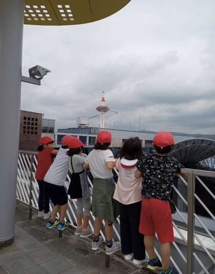 京都駅の展望台からも市内を見てみました。見る場所が変わると見え方も変わりますね。楽しそうにしています。