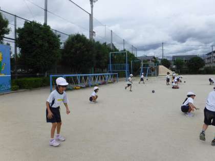 その後の「ころがしドッヂボール」では、普段一緒に外遊びをしていない友達とゲームをしたグループもありました。