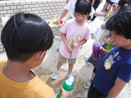 できた!の声や笑顔とともにいろいろな色ができあがりました。