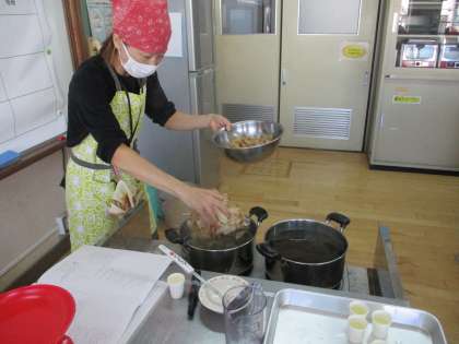 昨日、5年生は食の学習で「だしのうまみ」について学びました。今回は栄養教諭の船田先生に「昆布でとった出汁」「昆布とカツオの合わせ出汁」「さらに醤油と塩を加えた吸地(すいじ)」の3種類のだしを準備していただき、実際に試飲しました。昆布出汁は香りが強いわりに味気がなかったようですが、合わせ出汁ではうまみを感じるようになり、吸地に至ってはお代わりをお願いする子もたくさん出たほどにおいしく感じたようです。2つの出汁を合わせることで生まれるうまみの相乗効果に、子どもたちも驚いた様子でした。日本の出汁文化は素晴らしいものですね。普段は時間もなく丁寧に出汁をとることができないご家庭も多いのではないでしょうか。これを機会にご家庭でも一度ゆっくり、子どもたちと一緒に出汁をとるところから料理をしてしてみてはいかがでしょうか?