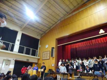 6年生は、合唱「あすという日が」「いのちの歌」、合奏「アフリカンシンフォニー」を演奏しました。「練習より気持ちを合わせることができた。」「いつもよりも声を出すことができた」「6年生以外の準備も手伝うことができた」とできたことをふりかえることもできました。今日学んだことを残りの学校生活で生かすことができるようにしていきたいですね。