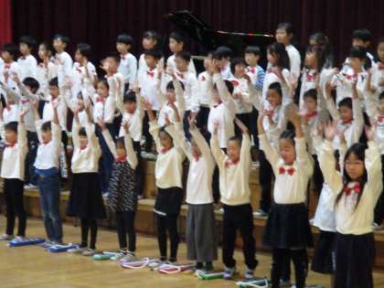 2年生は『音楽でみんなとつながろう』を合言葉に、「山のポルカ」「たぬきのたいこ」の演奏、「手のひらをたいように」の合唱の練習を毎日頑張ってきました。