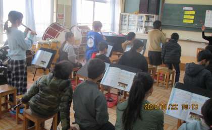 小学校最後のリコーダーの学習でした。姿勢やタンギング、目線などを意識して吹きました。