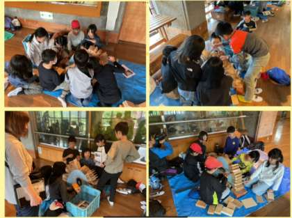 どうすればアーチが作れるのか、どんな組み合わせをすればいいか、友達と話し合いながら組み上げています。