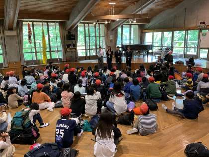 2泊3日の山の家での活動が終わり、退所式をしています。学生ボランティアの皆さんともたくさんの思い出をつくりました。