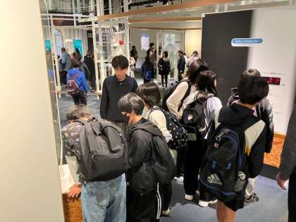 プラネタリウムが終わり、グループで館内の展示や体験で楽しんでいます。