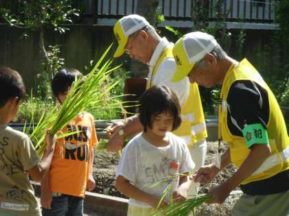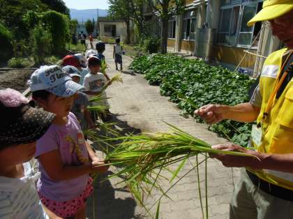 2年生は小さな田んぼで稲を育てています。