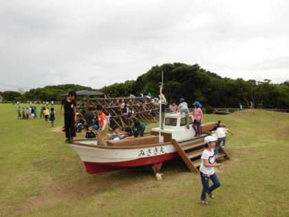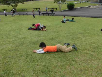 芝生広場で