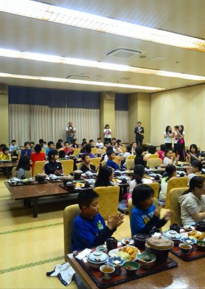 豪華な夕食に、笑顔いっぱいの子どもたちです。