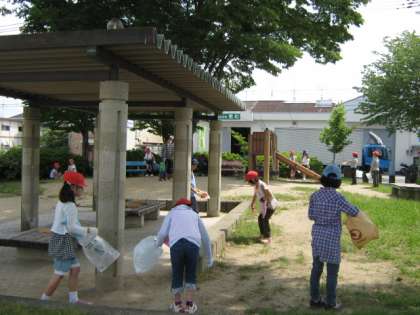 5月30日は、「ごみ0の日」です。その取組を今日行いました。自分たちが生活する学校や地域を大切にしようとする態度を育てるのがねらいです。1,2,6年と3組児童は校内、3,4,5年は近くの公園や桂川のごみ拾い、草引きをしました。みんなで協力をして、ビニール袋いっぱいにごみや落ち葉を集めました。