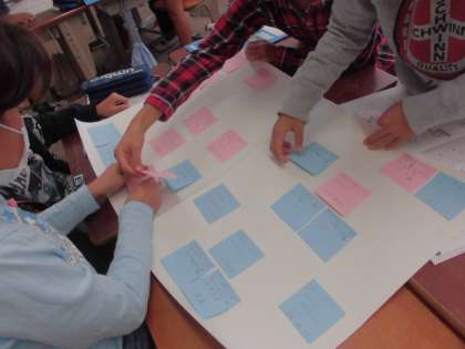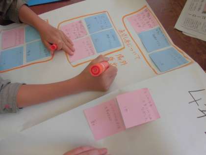 自分たちの「できたこと」「できなかったこと」を付箋に書いて模造紙にまとめてみると,自分たちにこれから必要なことが見えてきました。