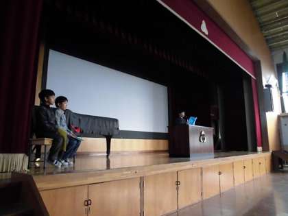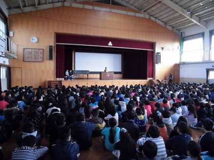 けいとくタイムを実施しました。今日は,3人の4年生が発表しました。10月に行ったみさきの家で,友達と協力したこと,係活動で大変な思いをしたことなどを伝えていました。全校の子どもたちの聞く態度もよかったです。