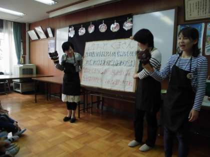 今日は今年度はじめてのポケットくまさんお話会がありました。「おふとんかけたら」「ぼくのえんそく」の2冊を読んでくださいました。低学年の子どもたちがふれあいサロンに集まり,楽しい雰囲気の中で読み聞かせに聞き入っていました。