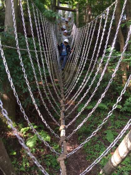 今日の予定にはありませんでしたが,お天気が良くなり,冒険広場も使えるようになったので,アスレチックをする事になりました。自分の力に合わせてコースを選び、嬉しそうに進んでいます。