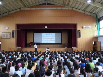 学校では,夏休み前の朝会で4月からの頑張りを振り返りました。