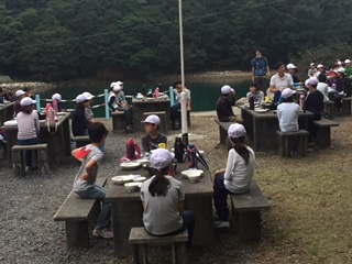 どの班もみんなで協力してとても美味しいすき焼き風煮が出来ました。夜のナイトハイクもとても楽しみにしているようです。