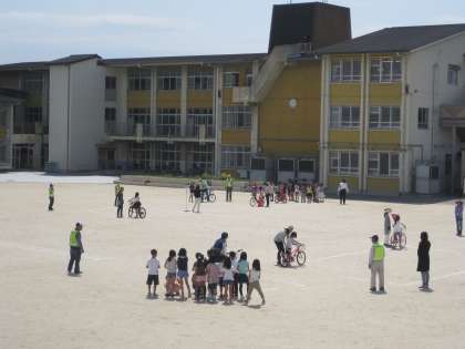 本日,西京警察署による自転車教室がありました。保護者の方や地域の方にも協力して頂き,自転車交通の安全について学ぶことができました。子どもたちも初めて学ぶことがあり,今後も「安全に気をつけて自転車を運転しよう」というめあてをもつことができました。