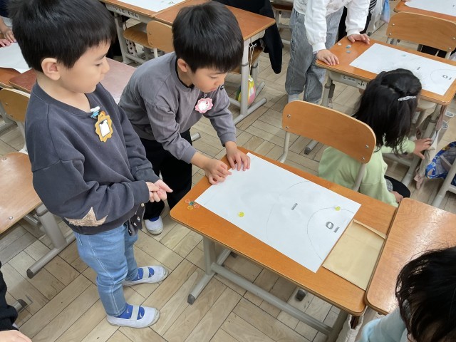 算数科の学習でおはじきを使った遊びをしました。「10が4つだから40」というように100までのかずを数えながら学習しました。