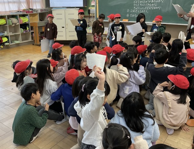 保幼小連携の架け橋プログラムの取組が進んでいます。前回、桂徳小学校に招待した保育園の園児をもう一度招待し、小学校について紹介します。今回は2クラスで紹介する練習を見合いました。みんなの前で堂々と話すことができる児童が増え、たくましい姿が見られました。