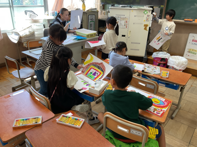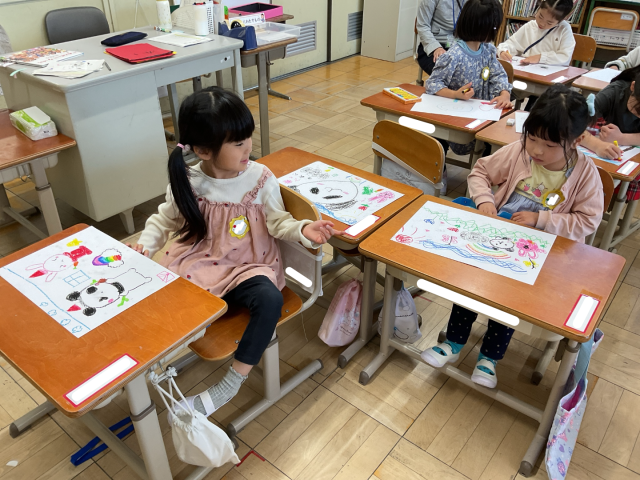 自分の好きなものを先生にお話したり、お友達に何をかいたのか尋ねたり・・・